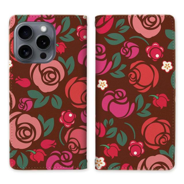 iPhone16 Pro アイフォン16プロ ベルトなし スタンド機能 - 薔薇デザイン - 手帳型 スマホケース 手帳ケース 手帳カバー スマホカバー マグネットでピタッと閉じる