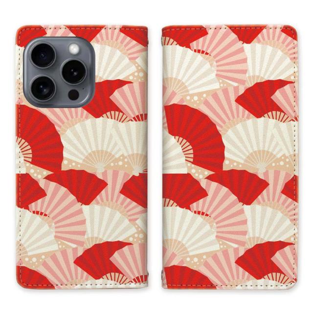 iPhone16 Pro アイフォン16プロ ベルトなし スタンド機能 - 扇子デザイン - 手帳型 スマホケース 手帳ケース 手帳カバー スマホカバー マグネットでピタッと閉じる