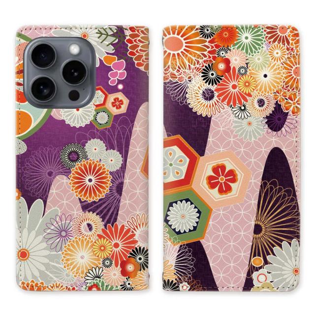 iPhone16 Pro アイフォン16プロ ベルトなし スタンド機能 - 和紙柄デザイン - 手帳型 スマホケース 手帳ケース 手帳カバー スマホカバー マグネットでピタッと閉じる