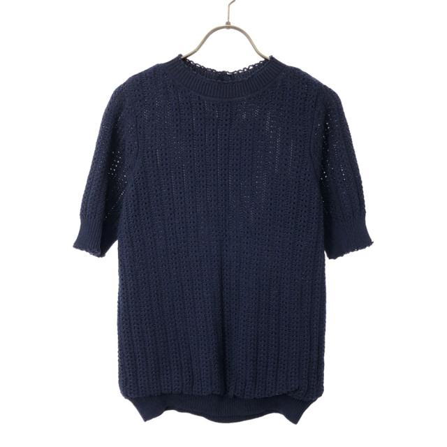 ニナリッチ イタリア製 ウールシルクブレンド 半袖 かぎ編み ニット S ネイビー NINA RICCI レディース