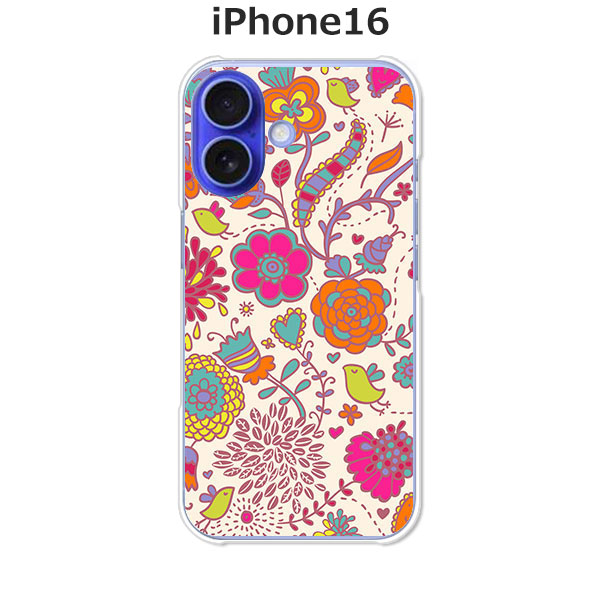 iPhone16 アイフォン16 ケース ハードケース 花×小鳥 PCクリア スマホケース ハードカバー