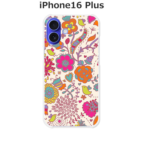 iPhone16 Plus アイフォン16プラス ケース ハードケース 花×小鳥 PCクリア スマホケース ハードカバー