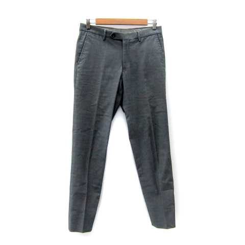 【中古】 green label relaxing スラックスパンツ テーパードパンツ ロング丈 無地 M グレー /SY15 メンズ