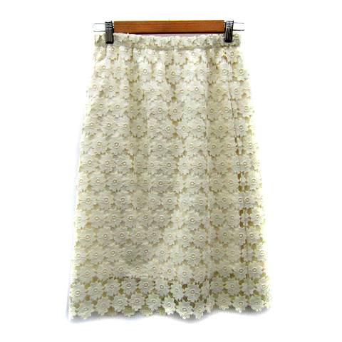【中古】クチュールブローチ COUTURE BROOCH フレアスカート ミモレ丈 総レース 花柄 38 M オフホワイト レディース
