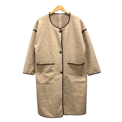 【中古】イング INGNI オーバーコート アウター ノーカラー パイピング 長袖 M ベージュ レディース