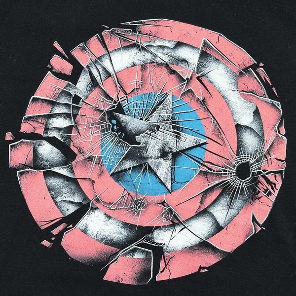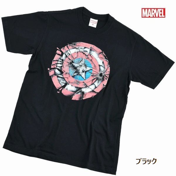 人気アメコミブランド「MARVEL(マーベル)」のキャプテンアメリカ!!ひび割れたトレードマークの星型の盾プリントが非常にカッコいい「MARVEL」Tシャツ!