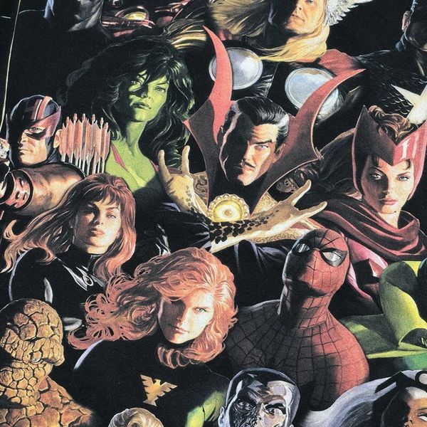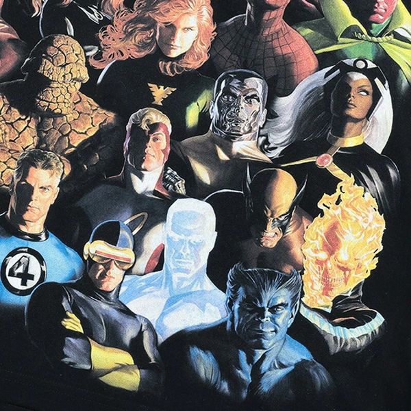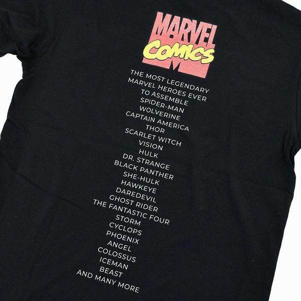 人気アメコミブランドMARVEL(マーベル)コミックスの人気キャラクター達が勢揃いした激シブTシャツ!最強ヒーローたちのプリントがカッコいいTシャツです!