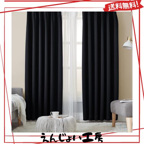 ◆商品名:Hansleep カーテン 1級遮光 4枚組 ブラック 幅100cm丈135cm UVカット 断熱 防寒 防音 省エネ 厚手 無地 おしゃれ カーテンセット 洗える