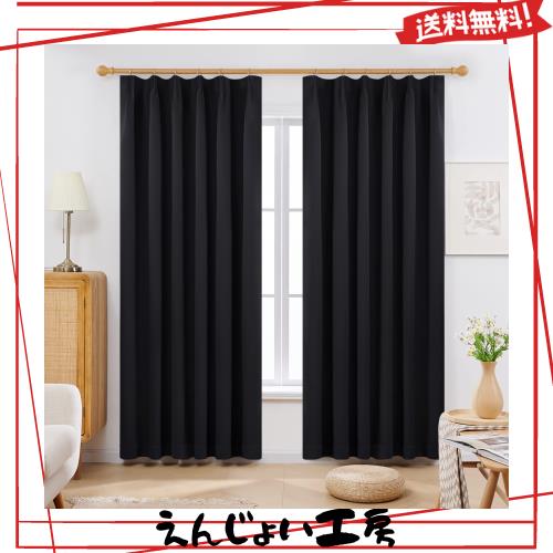 ◆商品名:Deconovo 完全遮光カーテン 幅100cm丈80cm ブラック 小窓 出窓 UVカット 間仕切り カフェカーテン 断熱 1級 節電対策 昼夜目隠し 2枚組