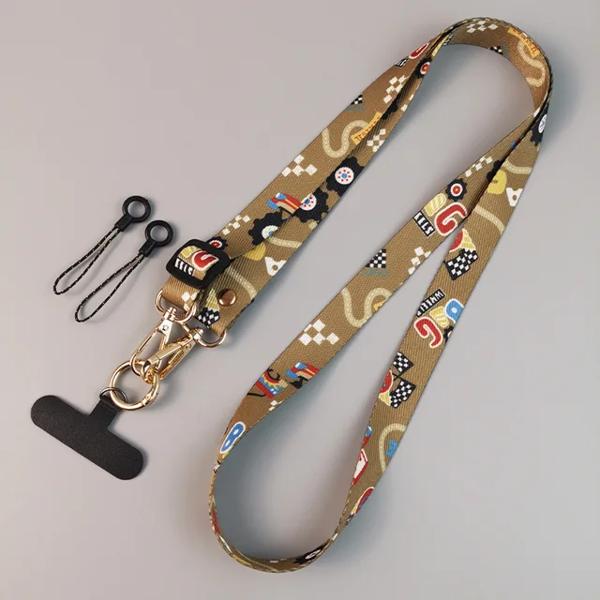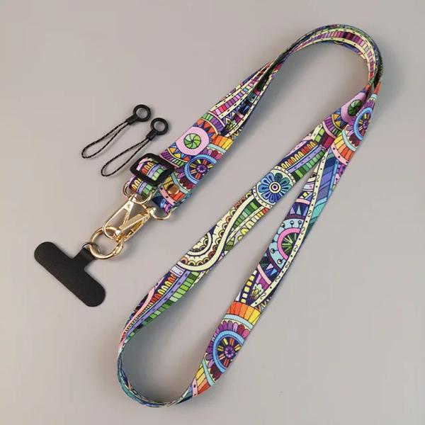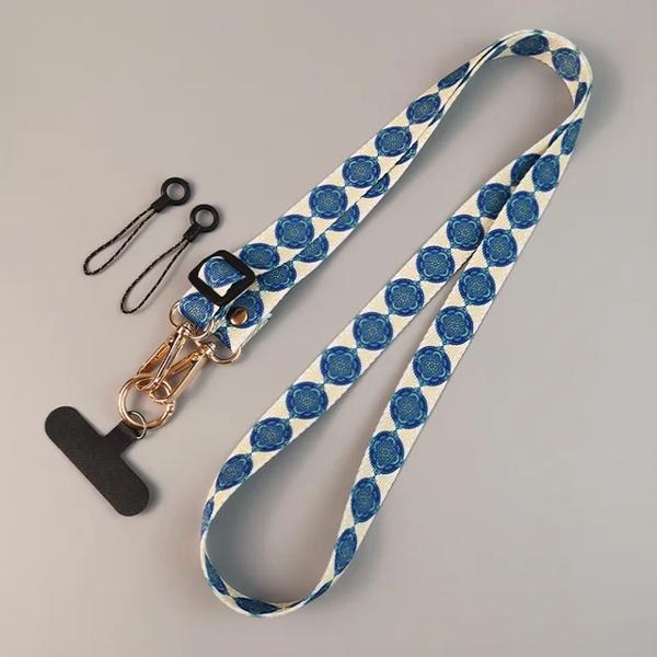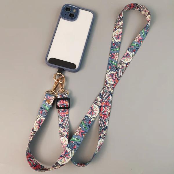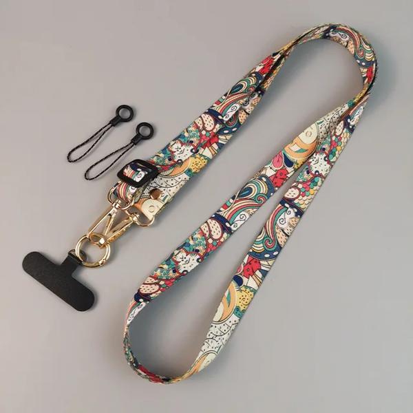 ロングモバイルストラップ ハンギングチェーン レトロなトーテムパターン 調節可能なネックストラップ