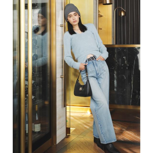 キレイめ印象のアイテムなので、ボトムはワイドパンツやデニムなどと合わせかっこいいい印象になるスタイリングがおすすめ。