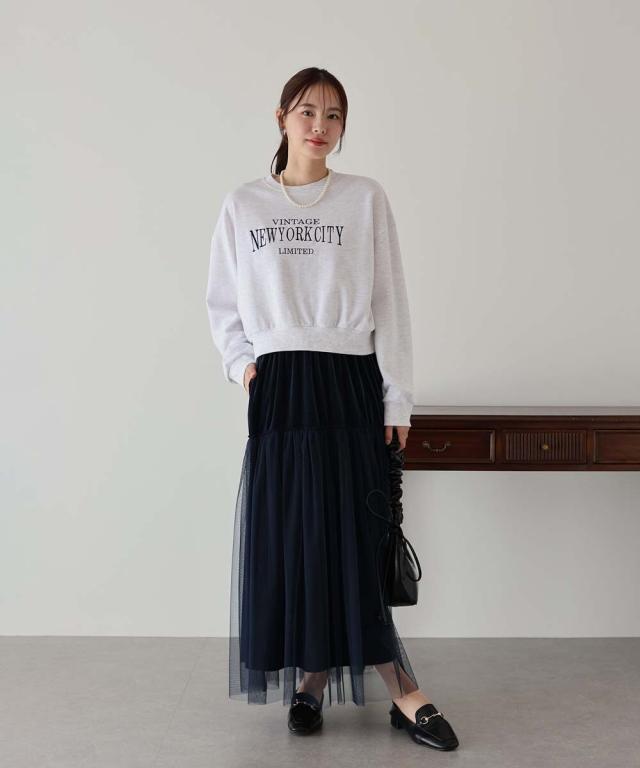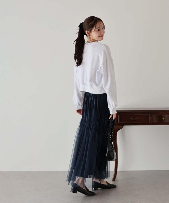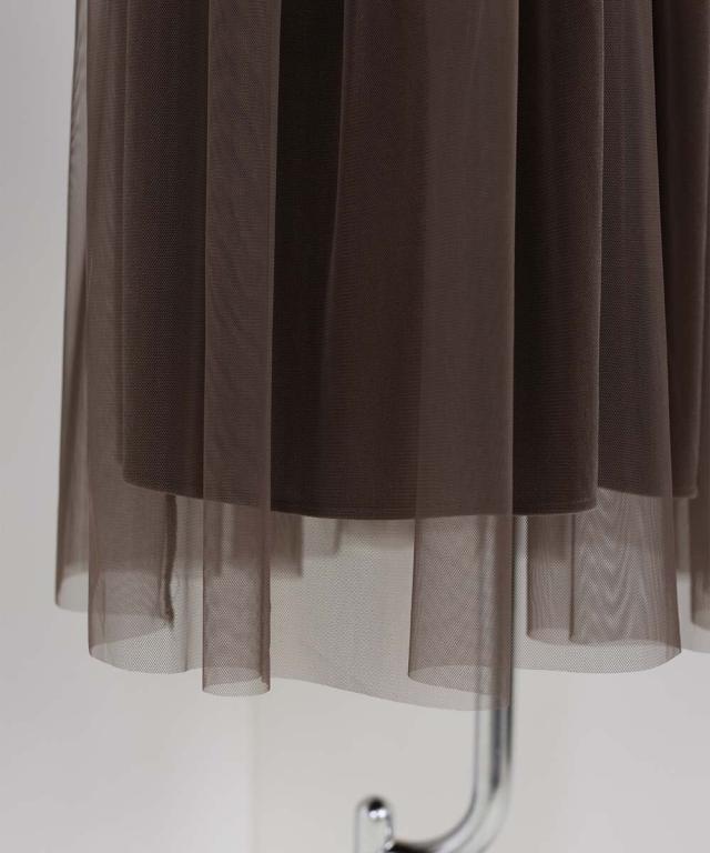 一枚着るだけでコーデに上品な華やかさをプラスし、贅沢なチュールのボリューム感とティアードデザインで女性らしさを演出。