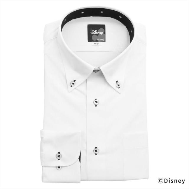 【ディズニー】 ボタンダウンカラー 長袖 形態安定ニットシャツ ストライプドビー