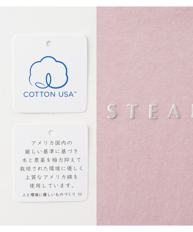 アメリカ国内の厳しい基準に基づき、水と農薬を極力抑えて栽培された、環境に優しく着心地もよいUSAコットン100%素材。