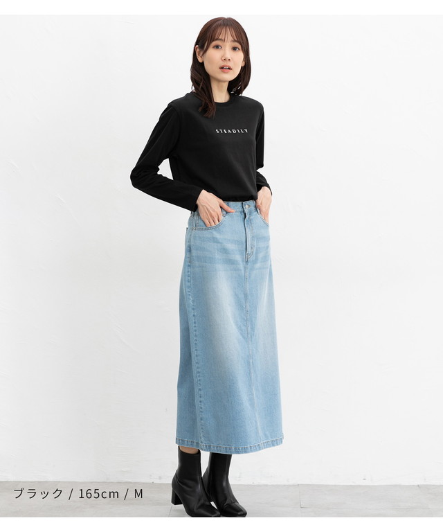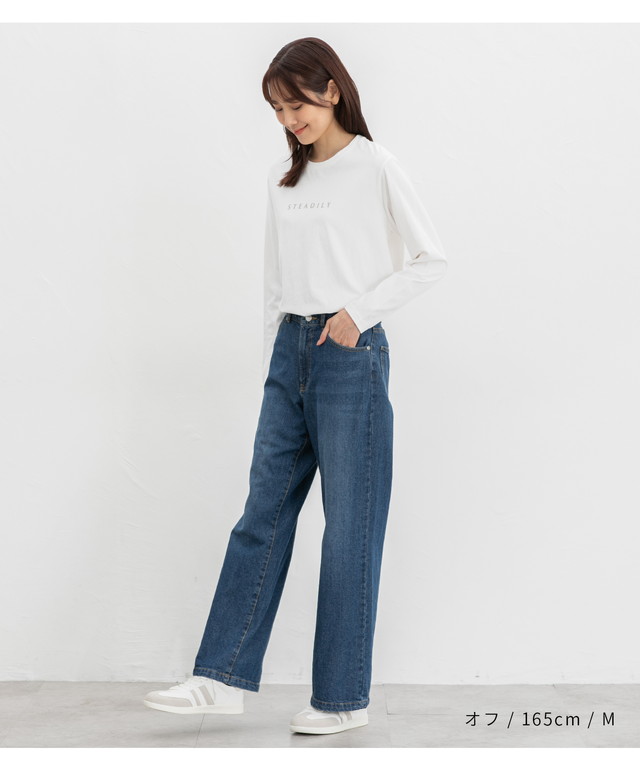腰回りが隠れる丈感で、ゆるすぎずタイトすぎない絶妙なサイズ感。