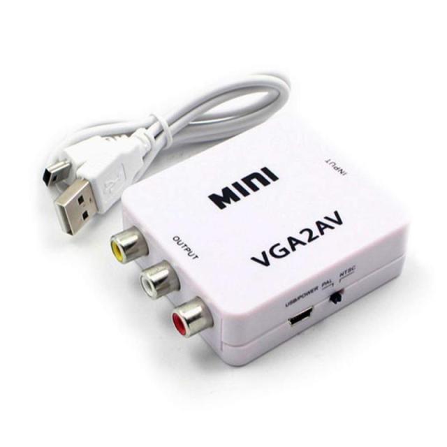 FOCUSMART VGA ⇒ AV変換アダプタ VGA信号をRCA(コンポジット)に変換 NTSC/PAL切替可 1080P対応 給電ケーブル付 VGA to AVコンバーター FMTVGA2AV