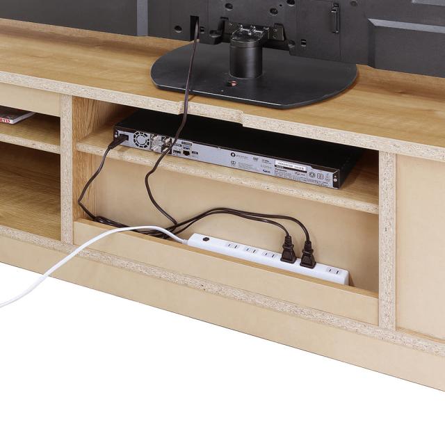 背面には電源タップの収納部があり、デッキ収納部からも扉付き収納部からも配線をすっきりとまとめることができるので、掃除もしやすく見た目も綺麗です。