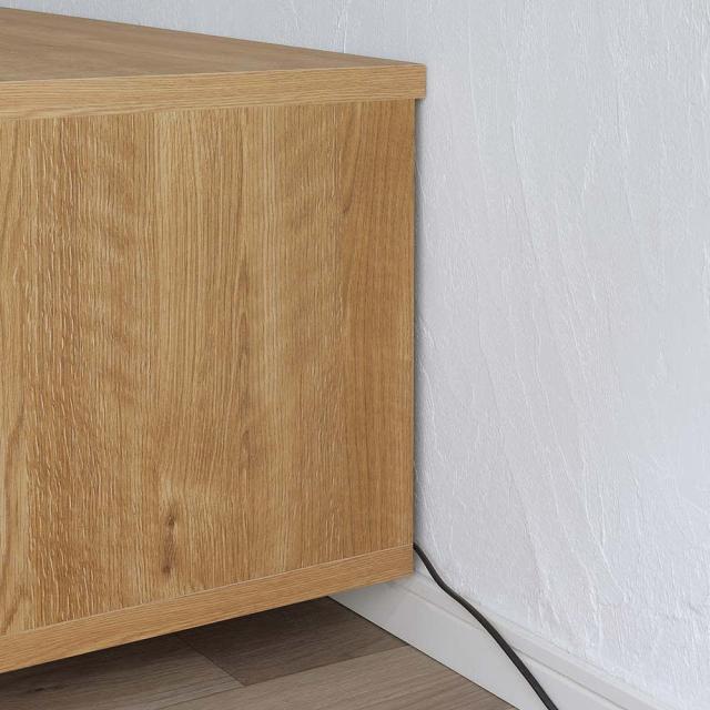 天板が背面にやや伸びている構造なので、巾木があっても壁付け出来て、側面から配線コードを通せます。