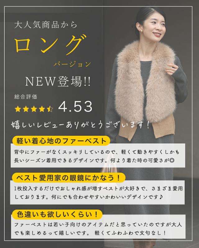 再入荷11月9日 お尻隠れる スッキリ見え ロングファーベスト cawaii fzp00184od 秋 冬 重ね着 リッチ感 軽量 羽織 日常使い おでかけ ふわふわ キレイめ 上品 レディース ファッション 大人 ママ ミセス 30代 40代 50代