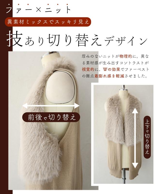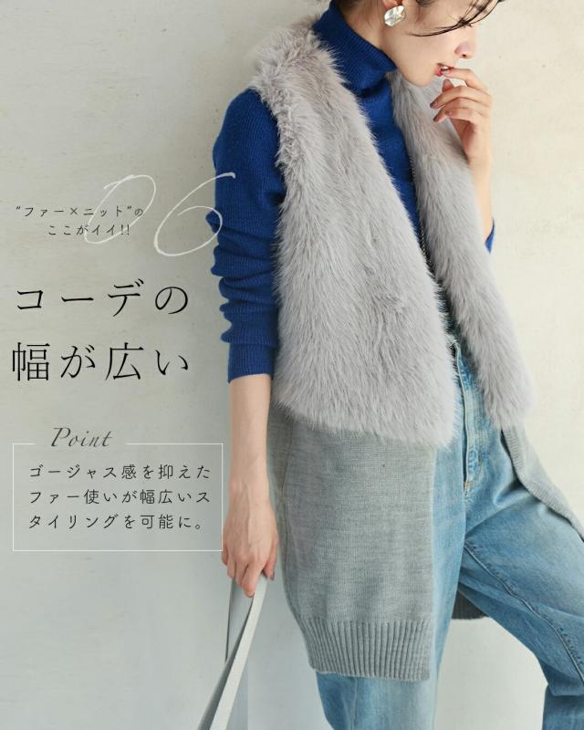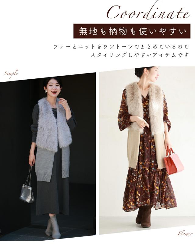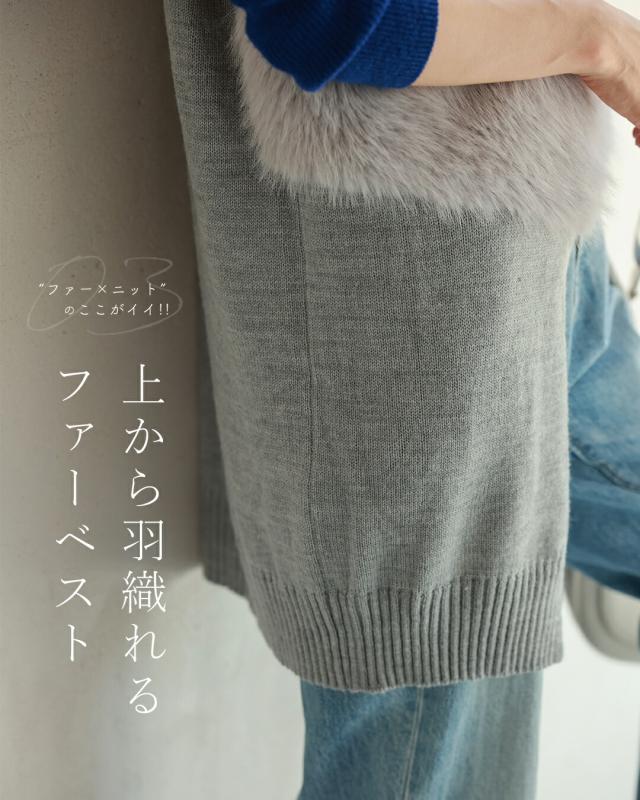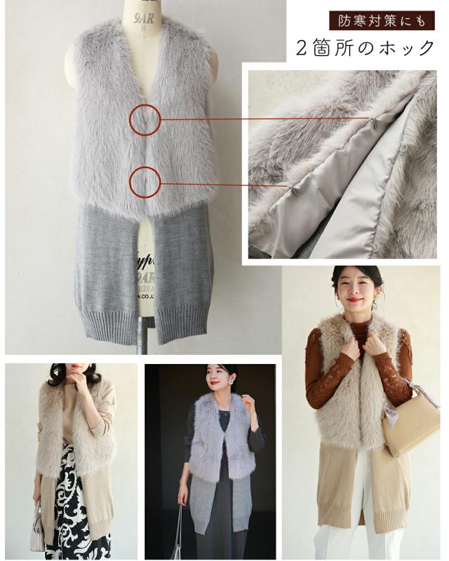fzp00184od 新作 新着 再入荷 CAWAII FRENCHPAVE フレンチパヴェ エレガント ベーシック カジュアル 可愛い かわいい カワイイ おしゃれ オシャレ お洒落 個性 個性的 定番 ベーシック 大人かわいい 大人可愛い 上品 女性らしい デザイン スタンダード ナチュラル きれいめ キレイめ シンプル フェミニン レディース レディースファッション 大人 ママ ミセス 30代 40代 50代 60代 お尻隠れる スッキリ見え ロングファーベスト ニット 長め丈 フェイクファー ふわふわ 前開き フロントホック 重ね着風 Sサイズ Mサイズ Lサイズ ワンサイズ フリーサイズ フリー 小さめ 小さめサイズ小さい 小さいサイズ 低身長 痩せ ほっそり 小柄 細身 標準サイズ 大きめシルエット 大きい 大きめ ビッグシルエット ぽっちゃり F サイズ自由 秋 冬 秋服 秋物 冬服 冬物 着回し 重ね着 レイヤード 体型カバー 体型隠し 体型隠れる 楽ちん 楽チン ラクラク 楽々 伸縮 ストレッチ 伸びる 伸縮性 ペールグレー グレー 灰 灰色 ベージュ 無地 ワンカラー ワントーン 日常着 普段着 日常使い おでかけ 旅行 家族旅行 女子会 リッチ感 軽量 羽織