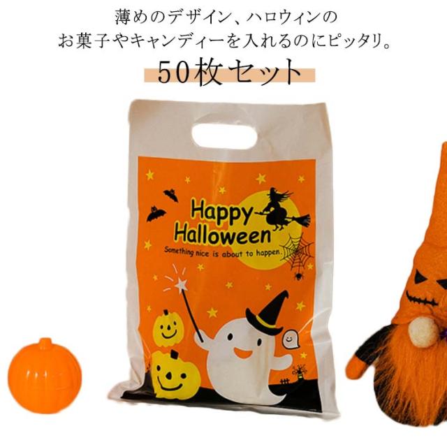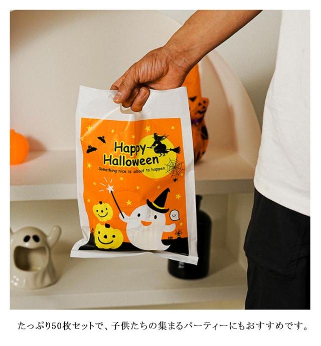 ハロウィン 50枚セット ラッピング袋 お菓子入れ プレゼント ラッピング 薄め 南瓜 手提げ式 小物入れ 50枚セット 袋 かぼちゃ パーティー お化け 可愛い かわいい 21×30cm