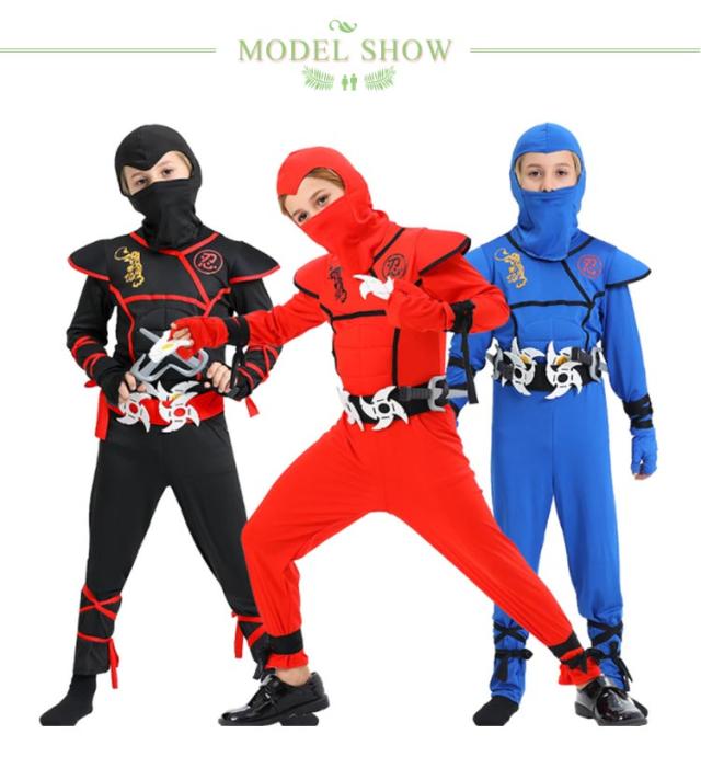 ハロウィン 忍者 コスプレ 衣装 子供 コスチューム キッズ 8点セット kids-ninja 忍者 くノ一 子供用 なりきり 黒 赤 外人 小学生 幼稚園 男の子 女の子 変装 変身 忘年会 イベント コスプレ 仮装 学園祭 110-150cm クリスマス