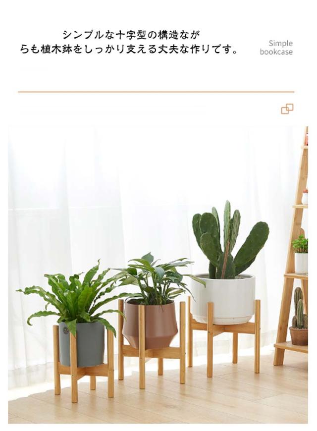| フラワースタンド 特大/大/中/小 4サイズ×2色選べる 【2台セット】 【ちょうどいいサイズ】 植木鉢を1つ置くのにちょうどいいサイズのフラワースタンドです。 シンプルな十字型の構造ながらも植木鉢をしっかり支える丈夫な作りです。 スタンドは上下反対にしても使用できるので、お好みの高さの方でご使用ください。 【お部屋にマッチ】 シンプルながらも暖かみを感じる木目調のデザインで、植物とも調和するだけではなくお部屋にも馴染んで使いやすいアイテムです。 植木鉢をただ床に置くのではなく、このフラワースタンドに置いて位置を高くすることでお部屋にもメリハリが出てオシャレな空間を演出します。 【優れた特徴】 ・防水効果があるので、水やりや水捌けの際に濡れてしまっても大丈夫です。 ・竹素材を採用しているので、一般的な木材に比べて腐りにくく嫌な臭いがしないという特徴があります。 | |