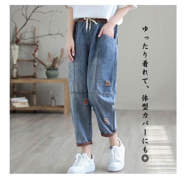 サルエルパンツ デニムパンツ サルエルパンツ レディース ダメージ ウエストゴム ガウチョ ポケット付き 体型カバー ゆったり 大きいサイズ サルエルパンツ 春夏 カジュアル おしゃれ ワイドパンツ 着?せ 通勤 通学 個性的 秋 デニム