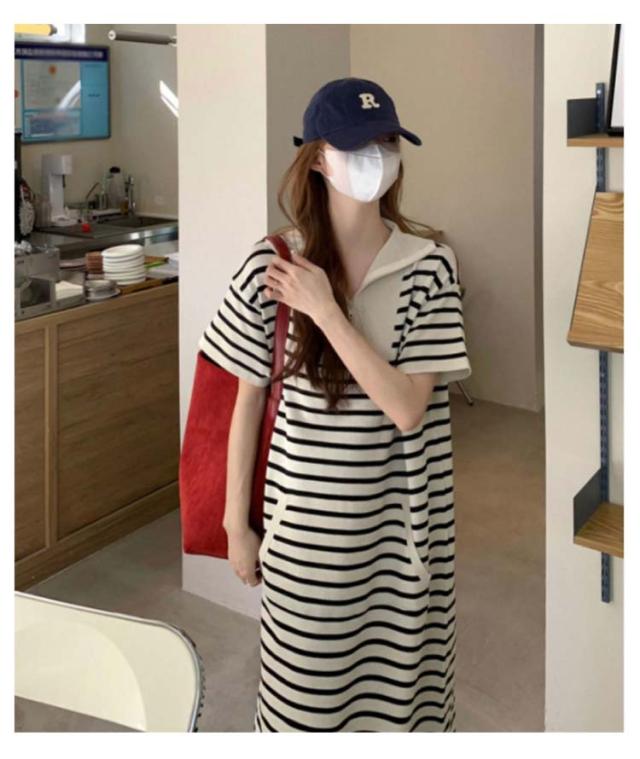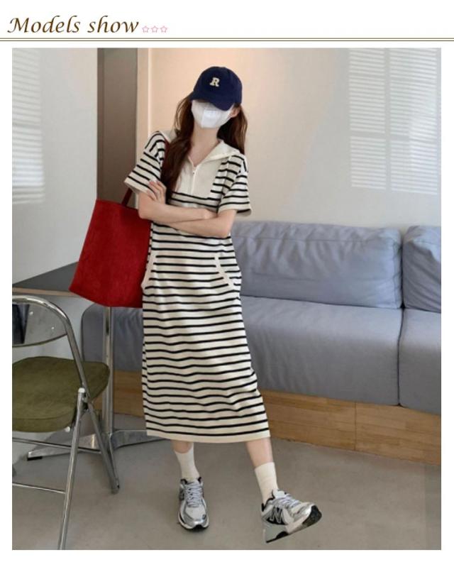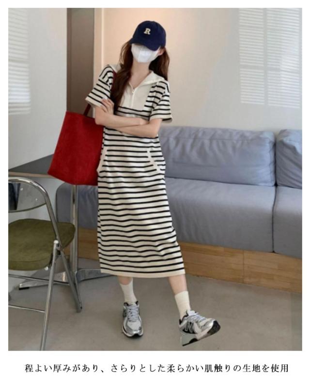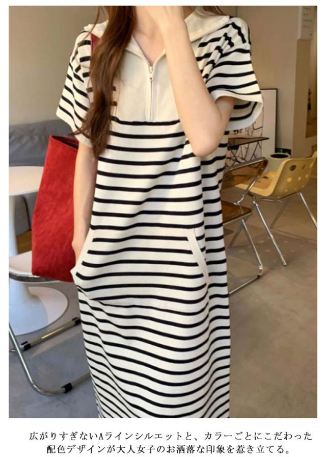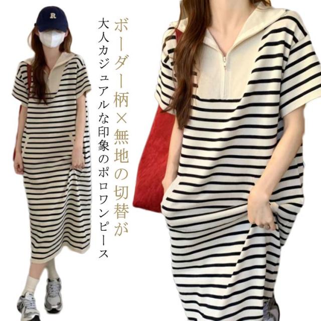 ワンピース ロングTシャツ レディース 半袖 ロング 襟付き ロング ワンピース ボーダー柄 大きいサイズ ゴルフウェア ポロ襟 お洒落 ポロシャツワンピース ポロワンピース 春夏 カットソー Aライン カジュアル 爽やか