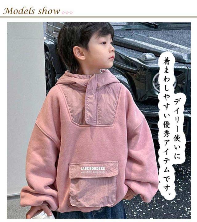 切り替え キッズ プルオーバー ジュニア 裏起毛 パーカー キッズ カジュアル 長袖 通園 シンプル 無地 おしゃれ カジュアル リンクコーデ スウェット あったか 子供服 着まわし キッズ 通学 女の子 男の子 フーディー 定番 春秋 こども服 子ども服 ダンス衣装