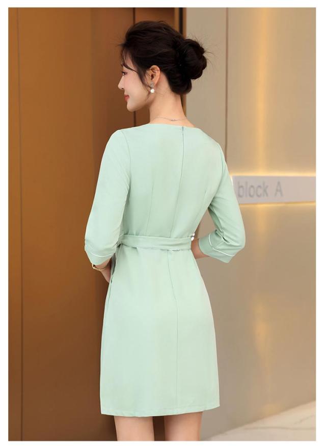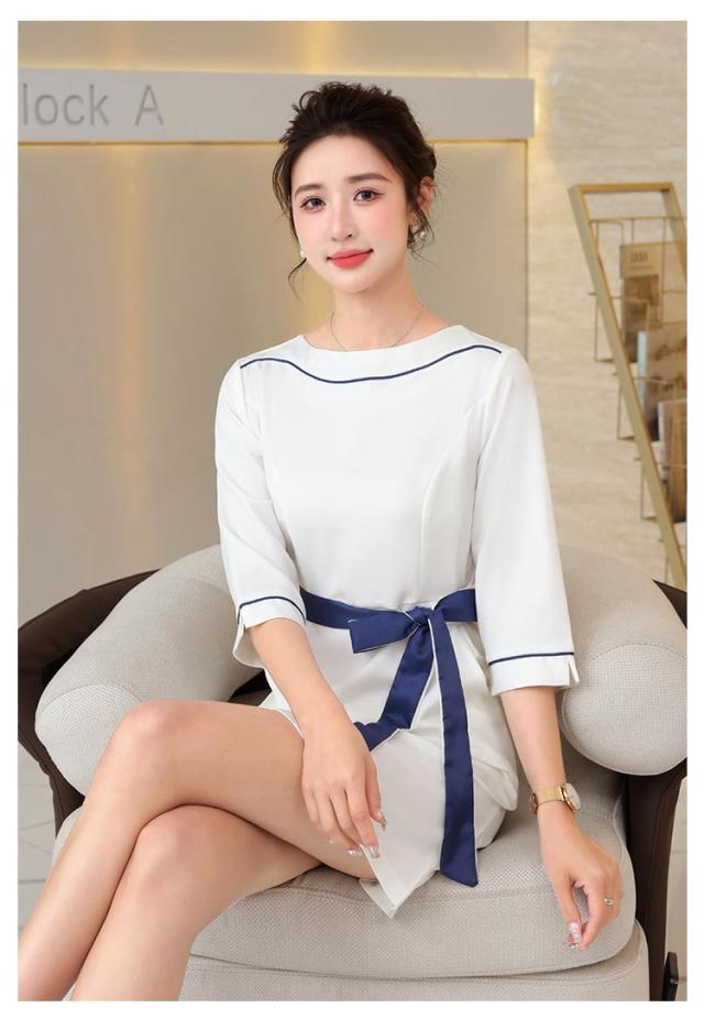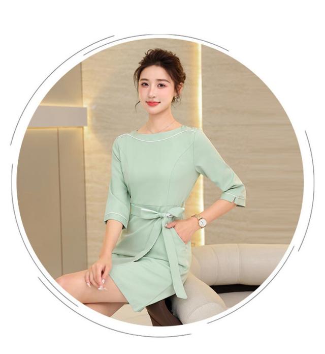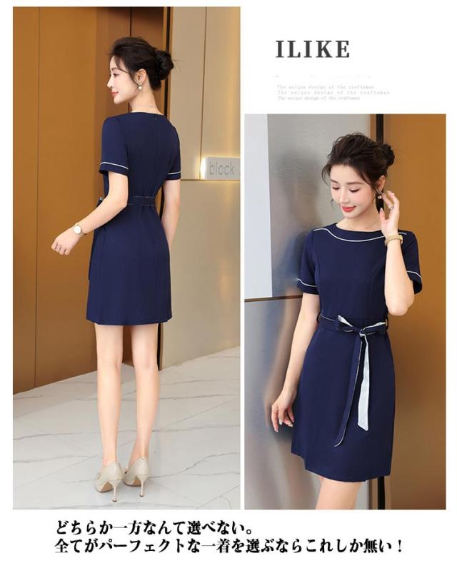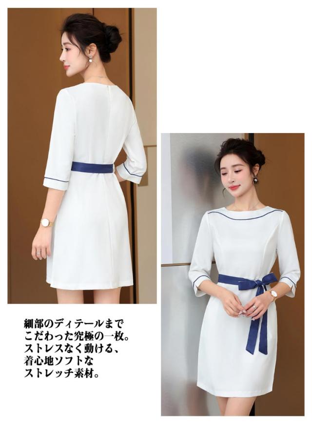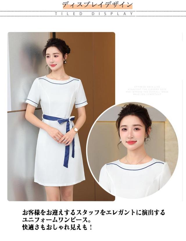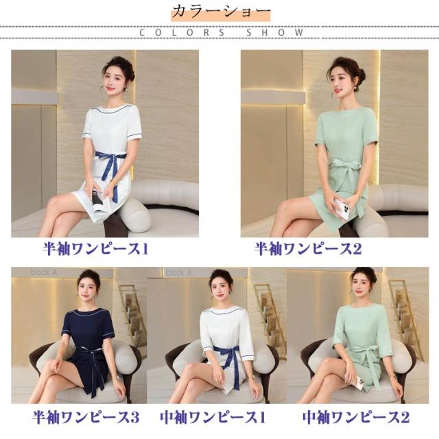 リボンベルト エステ ユニフォーム ワンピース 大きいサイズ おしゃれ サロン 制服 レディース 女性 半袖 七分袖 ネイル 美容 エステユニフォーム サロン 歯科衛生士 きれいめ 作業服 S M L XL 2XL 3XL 4XL