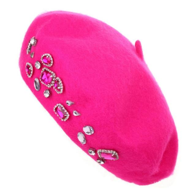 帽子 レディース 秋冬 ジュエリー ベレー帽 かわいい ニット キャップ おしゃれ ニット帽 キラキラ レディース帽子 ベレー 帽子 韓国ファション 華やか インスタ映え 春 秋 冬 56-58cm