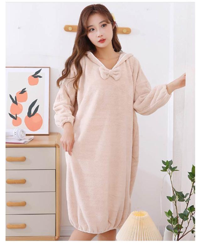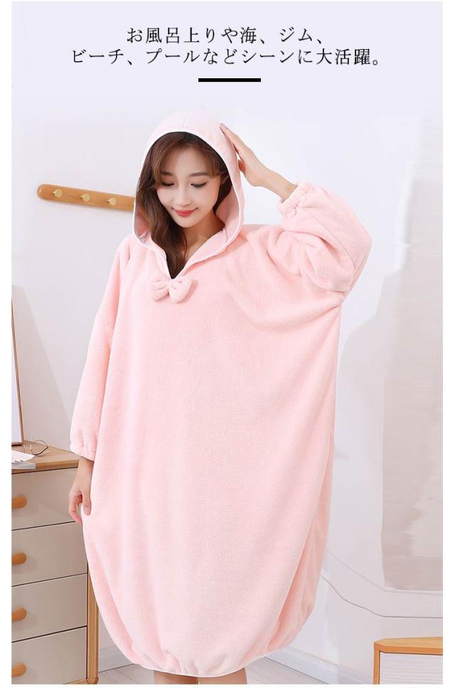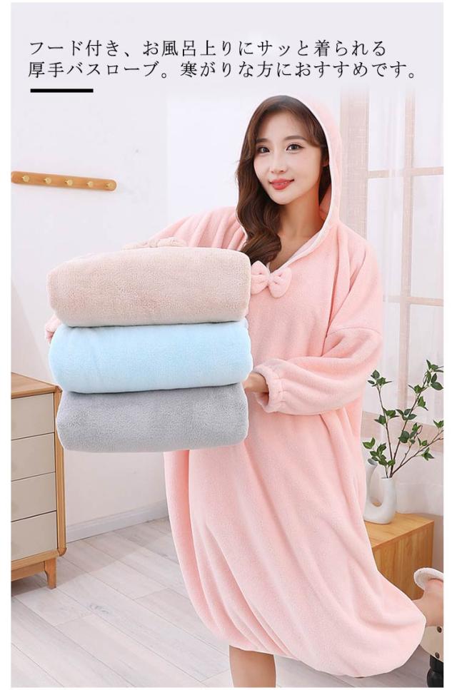 もこもこ バスローブ レディース 厚手 フード付き ルームウェア ワンピース リボン お風呂上がり 吸水 フード付きバスローブ かわいい 長袖 部屋着 バスタオル サウナ 湯浴み着 秋冬 ゆったり 大きいサイズ