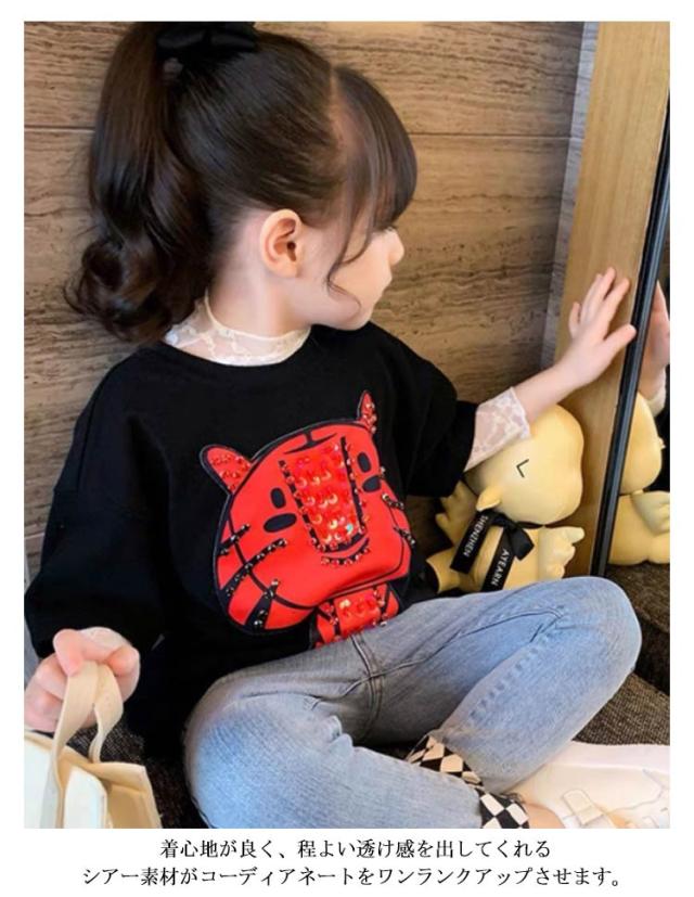 秋 春夏 シアートップス インナー キッズ 長袖 チュール トップス シースルートップス90cm シースルー 春秋 花柄 トップス ハイネック 日焼け止め 透け感 100cm UVカット キレイめ 華やか 透け感 おしゃれ カットソー レイヤード 110cm 120cm 130cm 140cm