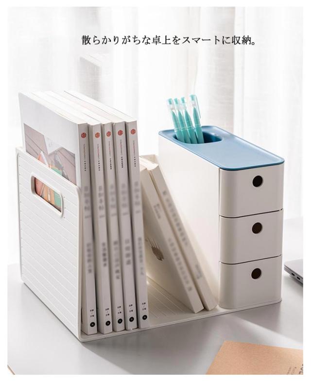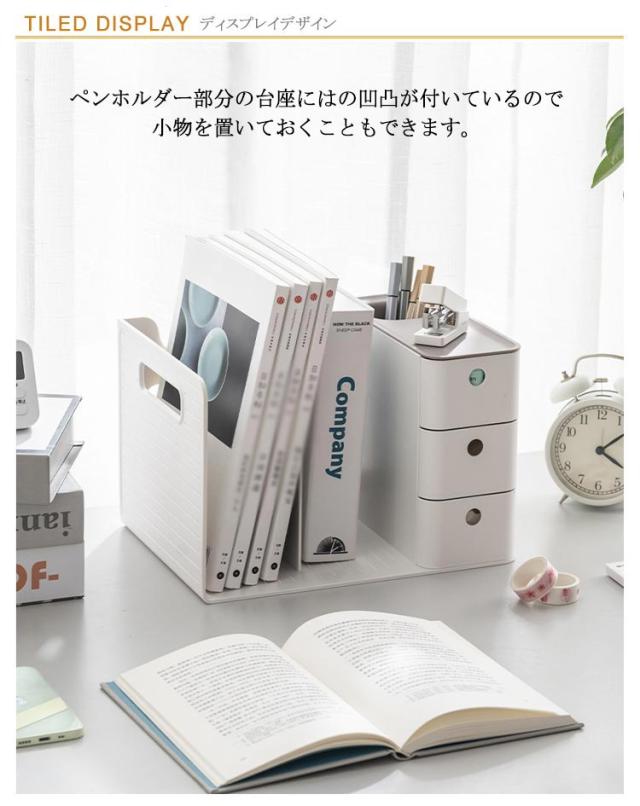 ペンスタンド デスク収納 送料無料 送料無料 一体型 ブックスタンド 引き出し付き 机上 本立て 卓上収納ラック 本棚 書類ホルダー 仕切り 置き棚 書類 収納