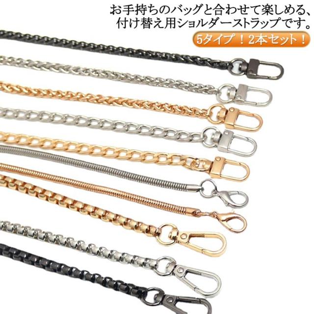 交換用 付け替え ショルダーストラップ バッグストラップ チェーンバッグストラップ バッグストラップ 単品 ショルダーベルト 2本 チェーン チェーンショルダーストラップ 付け替え用ショルダーストラップ 肩掛け 斜めがけ ストラップのみ レディース アクセサリー シルバー