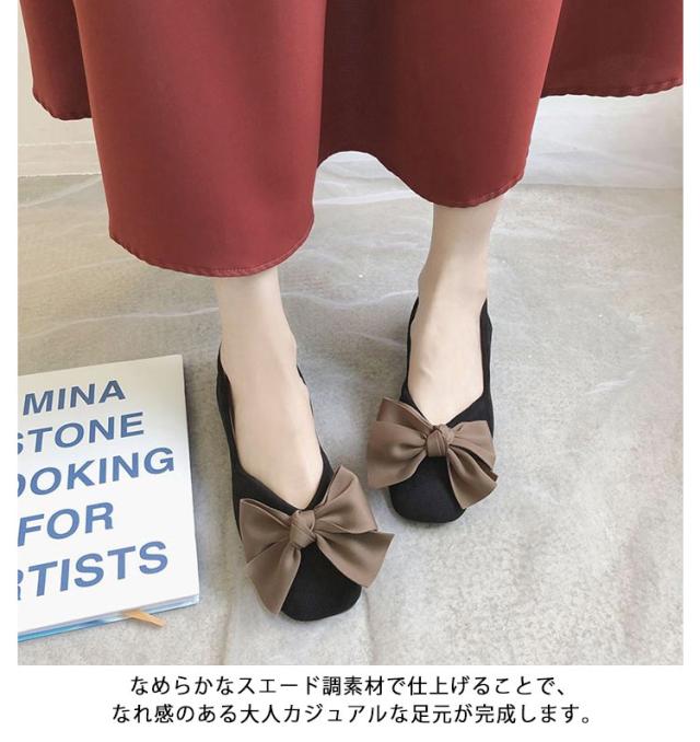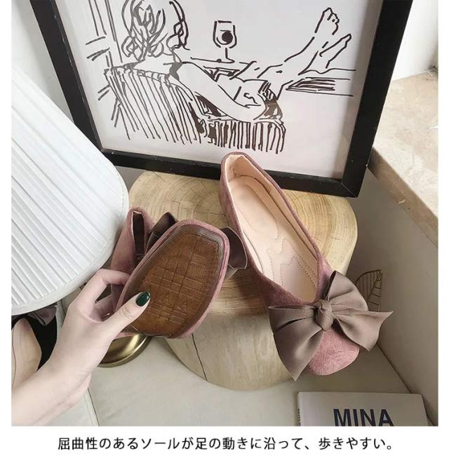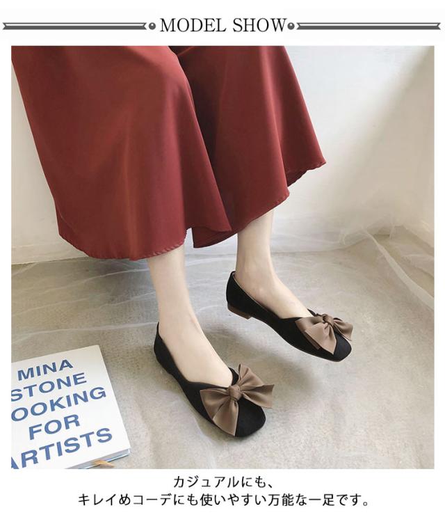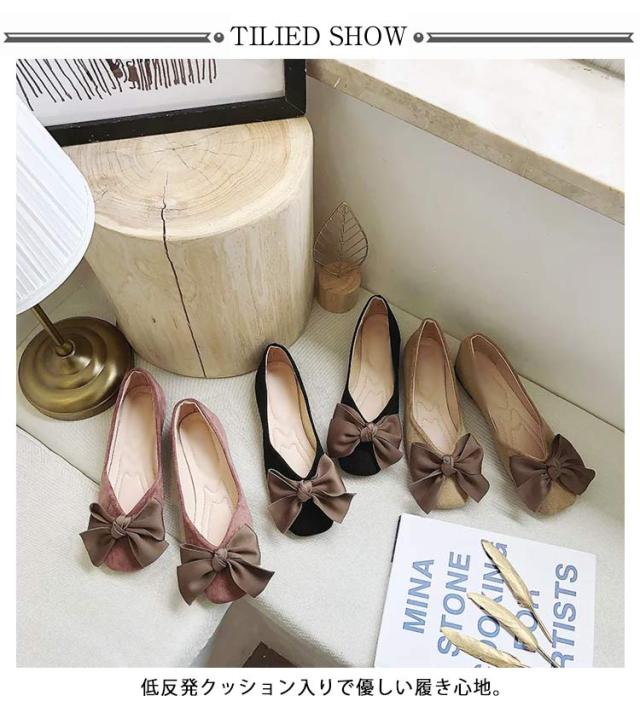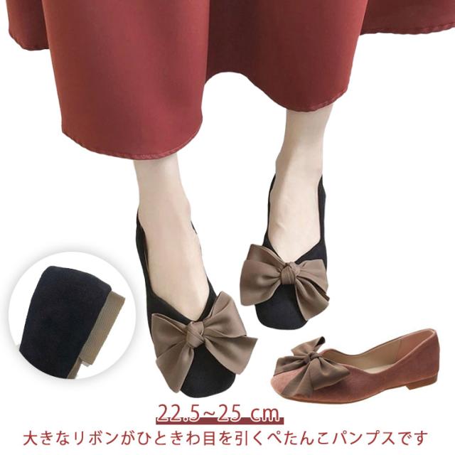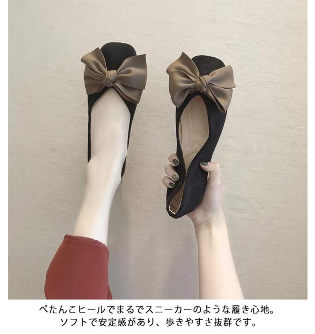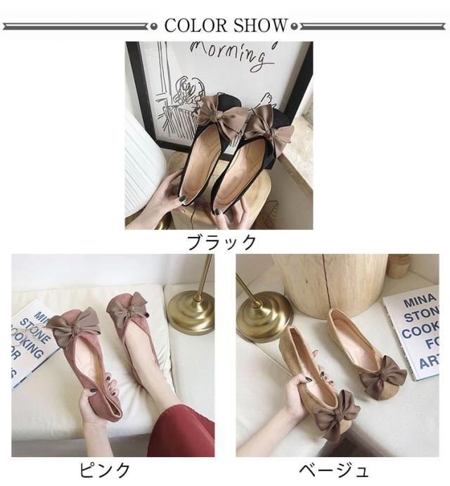 フラットパンプス 大きめ 歩きやすい レディース ローヒール リボン パンプス 痛くない 靴 ぺたんこ 歩きやすい バレエシューズ ぺたんこ 黒 ベージュ ピンク 22.5~25 cm