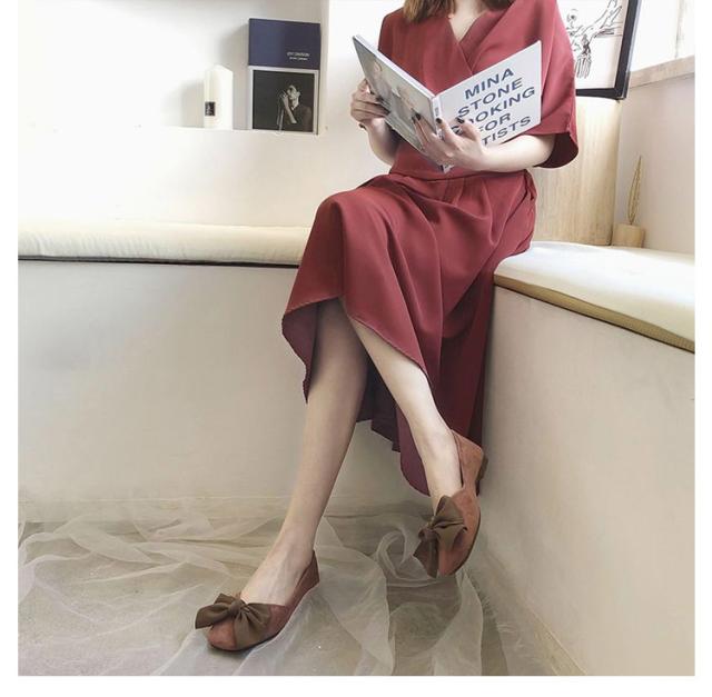 | 大きなリボンがひときわ目を引くぺたんこパンプスです。 なめらかなスエード調素材で仕上げることで、こなれ感のある大人カジュアルな足元が完成します。 屈曲性のあるソールが足の動きに沿って、歩きやすい。 低反発クッション入りで優しい履き心地。 ぺたんこヒールでまるでスニーカーのような履き心地。ソフトで安定感があり、歩きやすさ抜群です。 カジュアルにも、キレイめコーデにも使いやすい万能な一足です。 | |