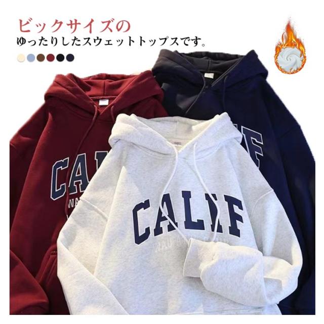 | ビックサイズのゆったりしたスウェットトップスです。 胸元のカレッジロゴプリントがアクセントになっています。 落ち感のあるドロップショルダーで華奢見え、ボリュームのあるフードで小顔効果も。 ほどよい袖のバルーン感、ゆるっとこなれ感、着て可愛いシルエット。 一枚ではもちろんシャツやカットソーを入れたレイヤードスタイルもおすすめです◎。 | |
