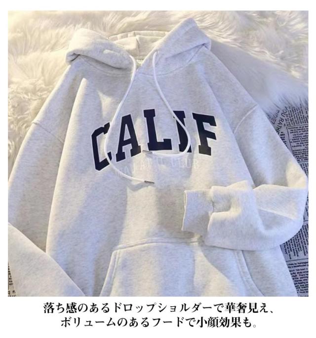 ロゴスウェット プルオーバー パーカー レディース ドロップショルダー フードパーカー お尻が隠れる ロゴ オーバーサイズ ゆったり ロゴスウェット トレーナー スウェット フーディ レイヤード スエット 小顔 薄手/裏起毛 秋