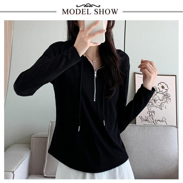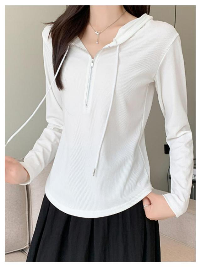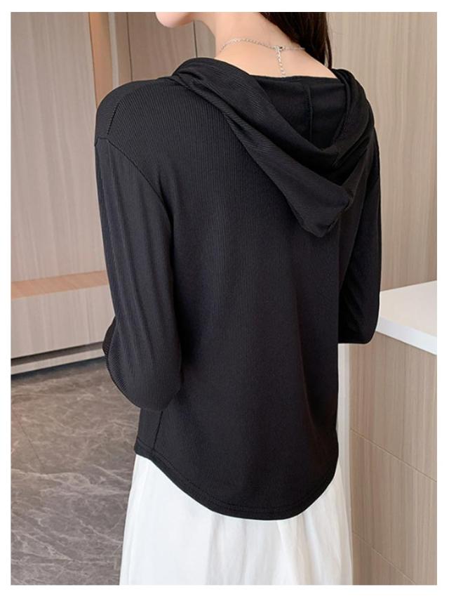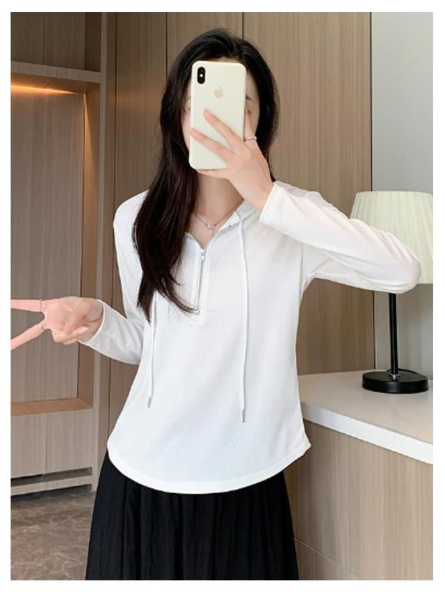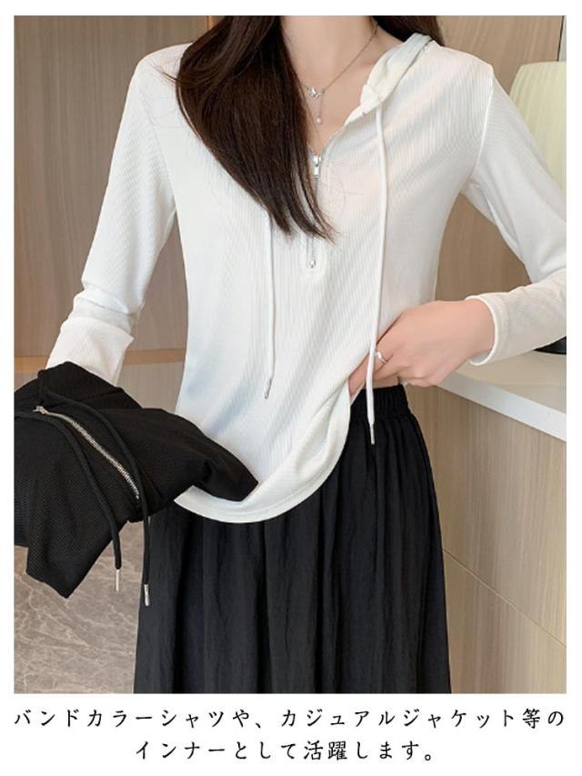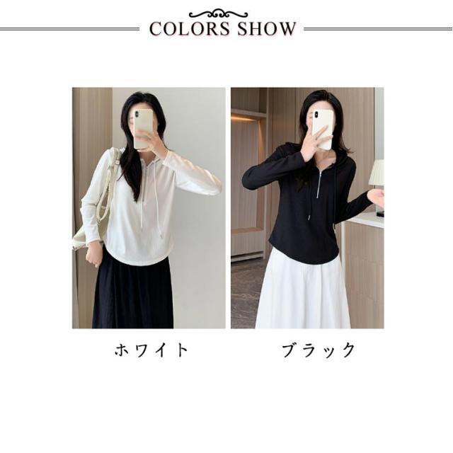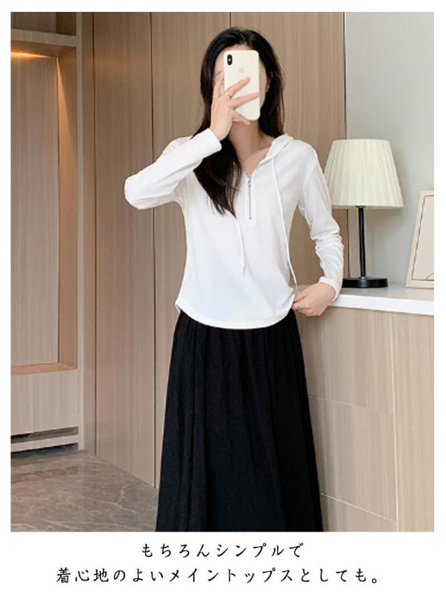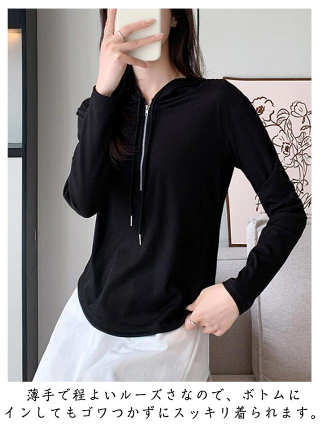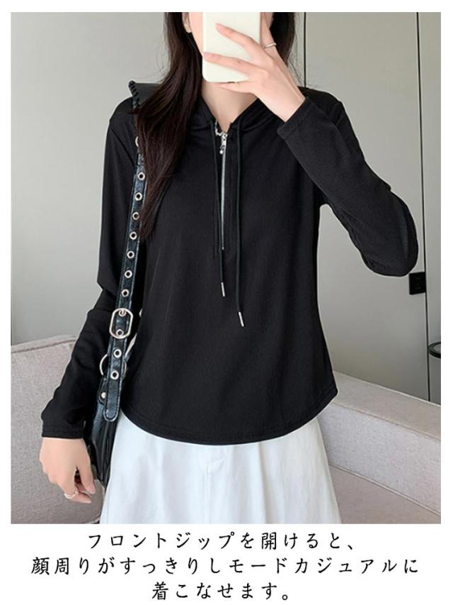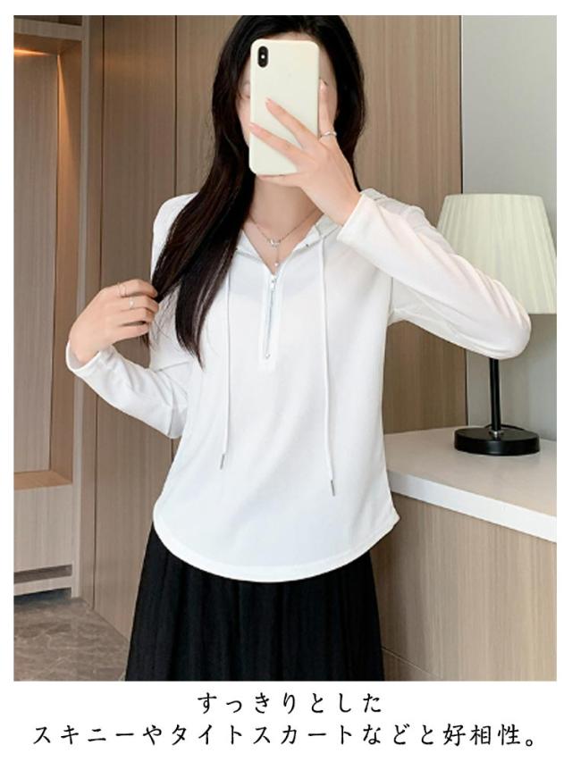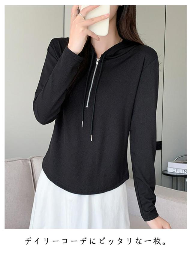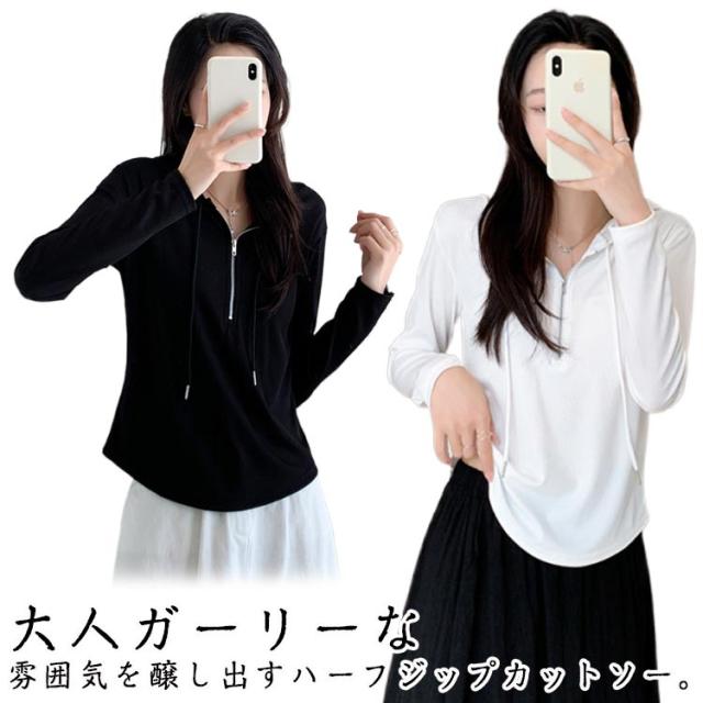 トップス カットソー 長袖Tシャツ レディース 春 ショート丈 Tシャツ 長袖 フード付き フード付き 送料無料 ハーフジップ パーカー 薄手 かわいい ティーシャツ 送料無料 ラウンド裾 シンプル おしゃれ