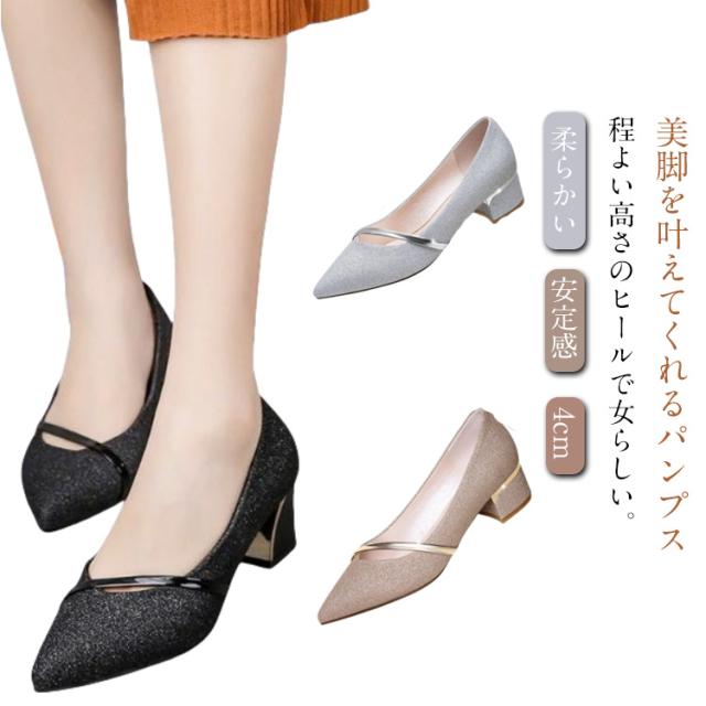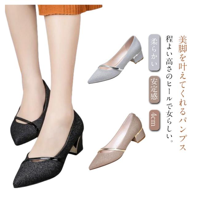 パンプス 疲れない 4cm キラキラ 柔らかい シューズ ポインテッドトゥ 上品 レディース 結婚式 フォーマル 痛くない ピンヒール 太めヒール 安定感 シューズ 靴 歩きやすい シューズ セパレート おでかけ オフィス 通勤 大人女性 ギフト プレゼント 送料無料