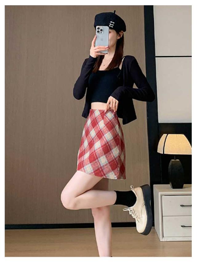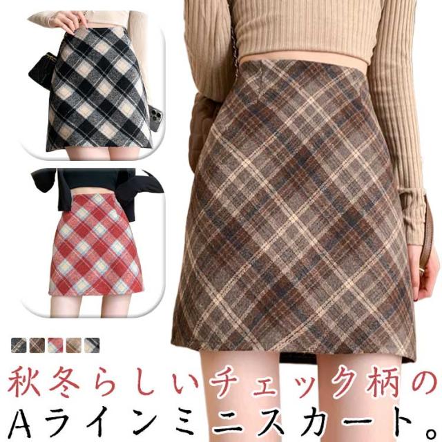 お出かけ スカート 可愛い カジュアル タイトスカート チェック 送料無料 ボトムス 台形スカート ファスナー 裏地付き 秋 膝上丈 ミニ丈 レディース 微起毛 ペンシルスカート 冬 きれいめ 送料無料 お洒落 シンプル ガーリー フェミニン レトロ Aライン 着回し 普段着