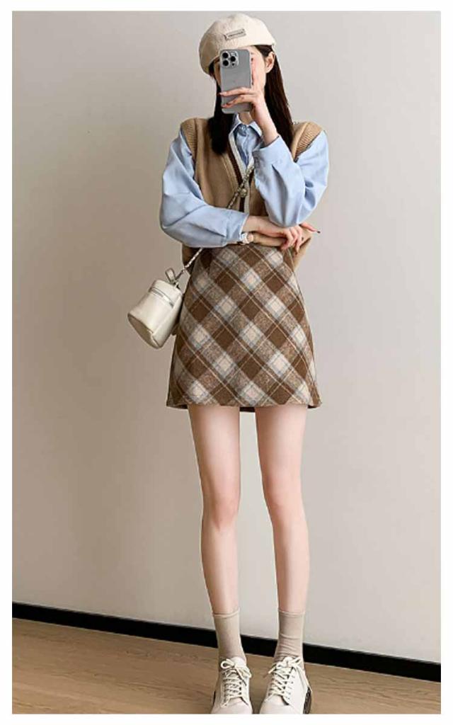 | 秋冬らしいチェック柄のAラインミニスカート。 ミニ丈の台形シルエットスカートは脚長効果を期待できて、ロングブーツと合わせればトレンド感&美脚見え◎ きれいめにもカジュアルにも合わせやすいチェック柄。 トレンドのショート丈ジャケットやクロップドトップスとの相性も抜群。 ウエスト周りがすっきりとしたデザインなのでタックインコーデもオススメ。 シーズンライクな生地感&柄デザインが可愛い◎ ロングブーツやショートブーツと合わせるスタイリングがおすすめです。 秋冬服にはバランス良く合わせやすいので是非気軽に挑戦してみて◎ | |