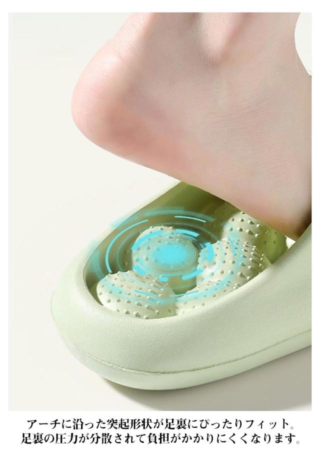 | 厚底があるので、長時間立っても疲労感なし、さらにクッションもすぐれたスリッパです。また弾力性があり履き心地が良いです。 足裏を優しく刺激し、気持ちよく歩けるようにデザインされています。繊細な刺激により、長時間の使用でも快適さを感じ、痛みを感じにくい設計となっているのが特徴です。 上質なEVA素材を使用。非常に軽量な素材でクッション性を持っており、衝撃を吸収する能力が高いです。また耐久性が高く、優れた耐水性を持っています。 アーチに沿った突起形状が足裏にぴったりフィット。足裏の圧力が分散されて負担がかかりにくくなります。 底面は滑り止め加工を施しているため、 ベランダ・トイレ・浴室などの濡れた地面でも滑ることなく使用できます。 足ツボサンダル、シャワーサンダル、ベランダサンダル、ビーチサンダル、トイレ用など様々なシーンでお使いいただけます。 | |