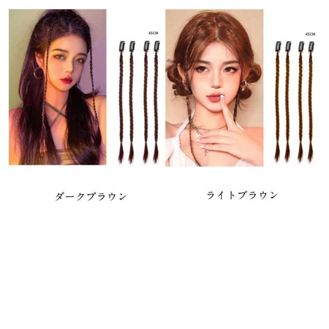 4本セット エクステ 三つ編み エクステンション ポイントウィッグ つけ毛 ワンタッチ カラーエクステ ヒップホップ ダンス 装着簡単 イメチェン キッズ レディース 部分エクステ おしゃれ 個性的 イメージチェンジ 可愛い ダンス衣装 舞台 45CM ギフト 送料無料