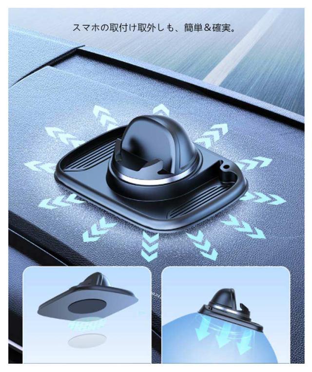 置くだけ スマホホルダー 車 強力 スマホスタンド 置き型 車載スマホホルダー 車載ホルダー 360度 調整可能 手帳型ケース対応 シリコン製 滑り止め 携帯ホルダー 脱着簡単 車用スマホホルダー