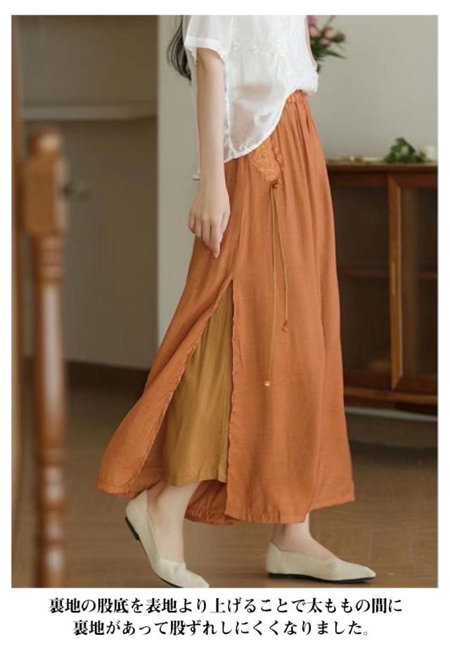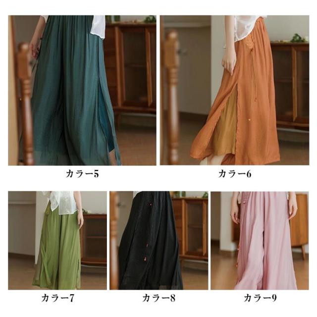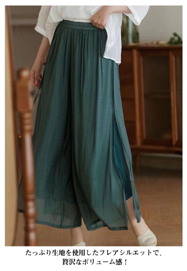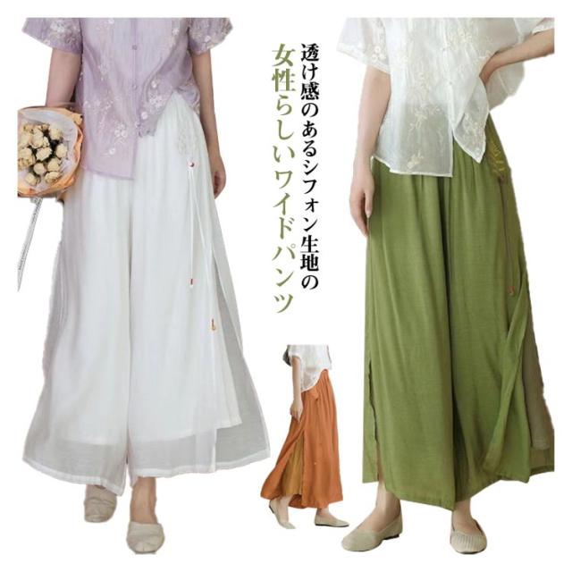 シフォン スカーチョ スカート見えパンツ スカーチョ スカンツ ロングパンツ ガウチョパンツ 春 夏 ワイドパンツ スカート風 フレアパンツ カラーパンツ ワイドパンツ シフォン ウエストゴム ゆったり