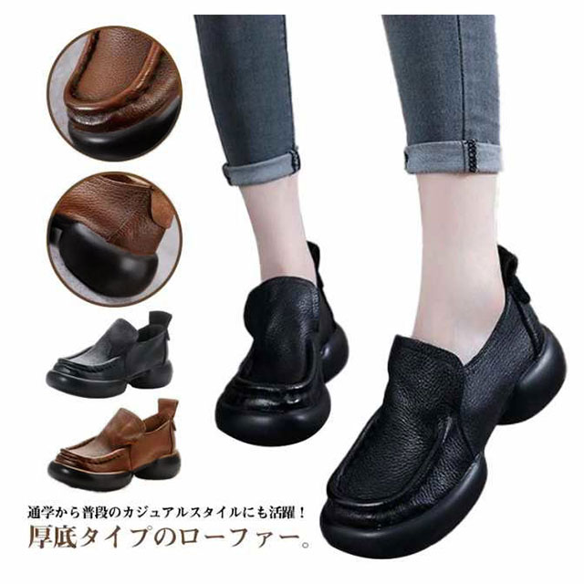 | 通学から普段のカジュアルスタイルにも活躍!厚底タイプのローファー。 甲をしっかり覆うデザインでフィット性にも優れ歩きやすいです。 ボリューム感のあるフォルムは脚を華奢に魅せてくれ、美脚効果も狙えます。 安定感抜群のヒールとゆったりとした靴幅で疲れにくく安心の履き心地。 クッション性の優れたウレタンソールに独自フットベットを採用。疲れにくいように設計されています♪ 普段のふんわりスカートに合わせて足元をキリっと引き締めたり、ワイドパンツに合わせてもとってもおしゃれ!ゆるっとしたボーイズパンツとも相性ばっちり! | |