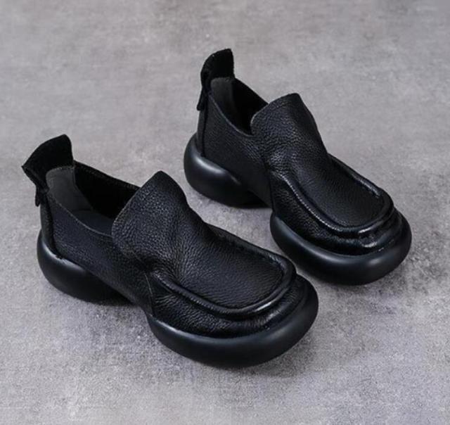 滑り止め 軽量 ローファー カジュアルシューズ ローファー 厚底 スリッポン PUレザー スクエアトゥ チャンキーヒール 歩きやすい 痛くない パンプス 靴 通勤 カジュアル ブラック